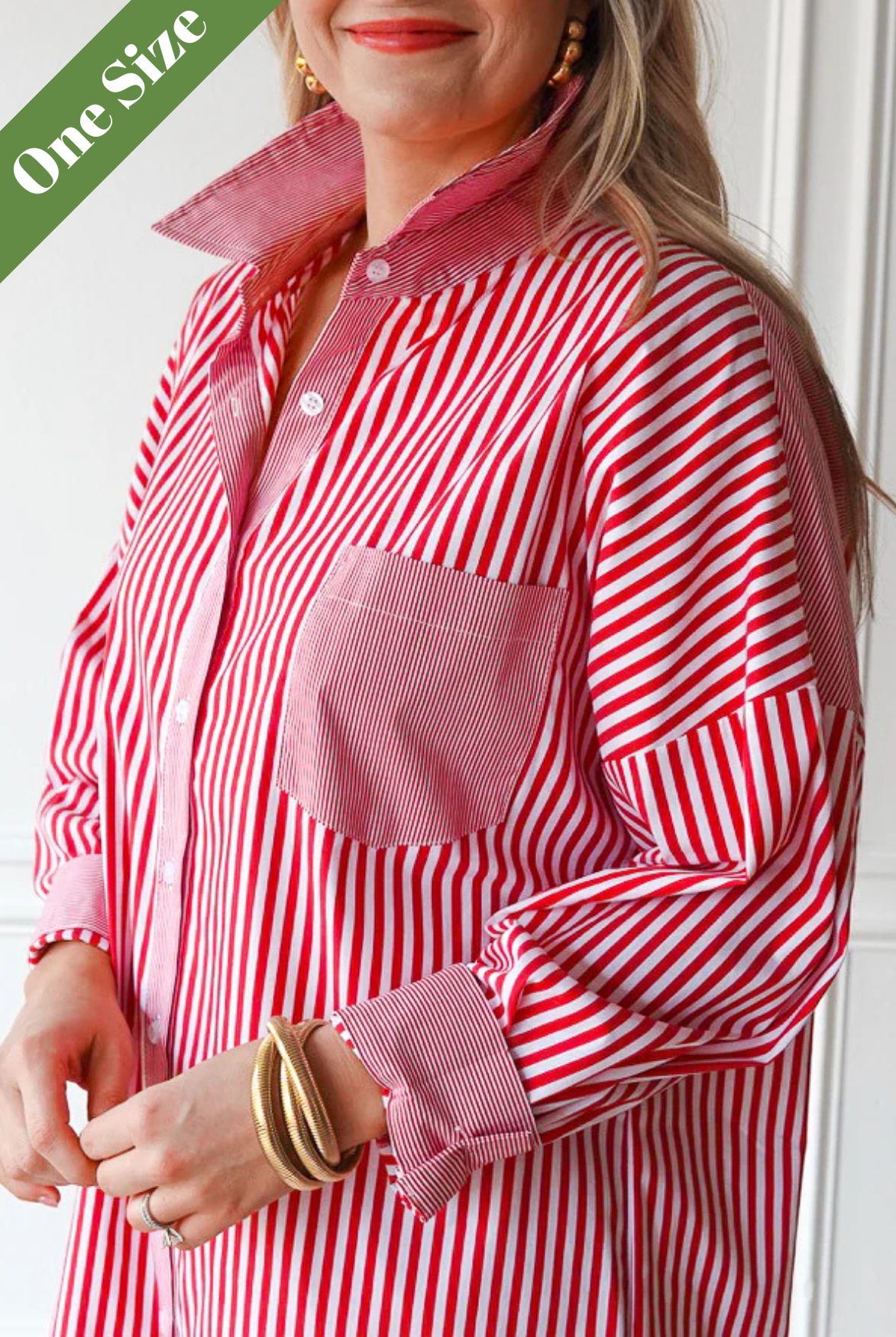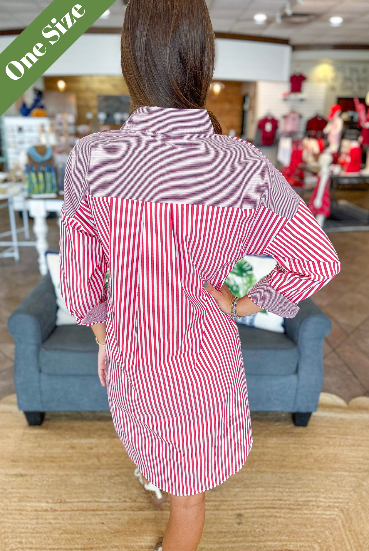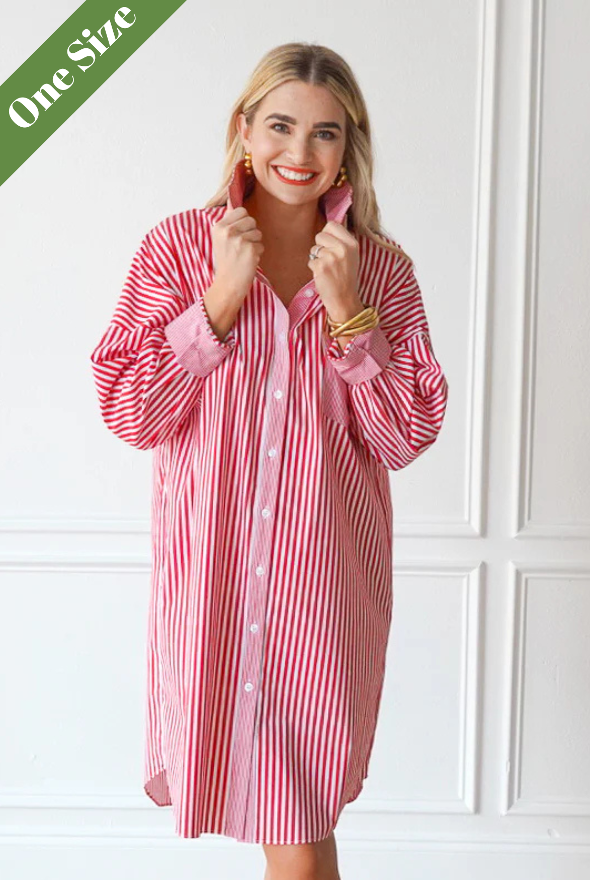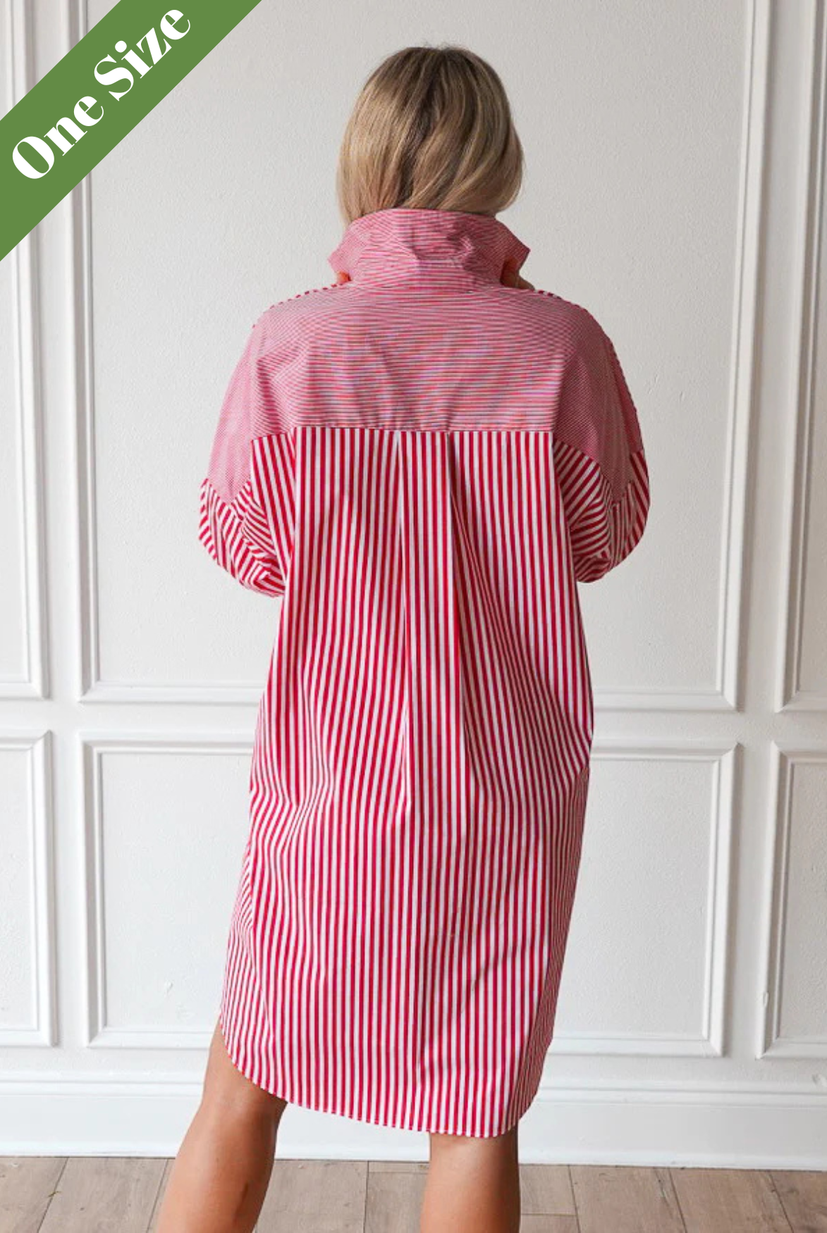 Effortless elegance with a playful stripe pattern. The Frances Dress features a flattering shirt dress silhouette, collared neckline, and button-front detail for a polished yet easy look. Designed in cotton poplin, it's perfect for layering with a cardigan on cooler days or wearing solo for a chic, breezy feel. Side pockets add a functional finish.