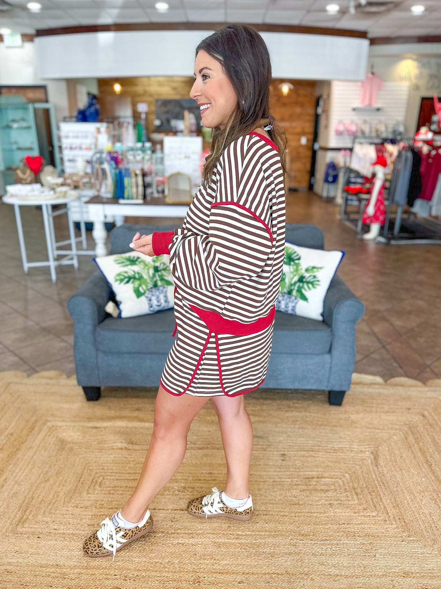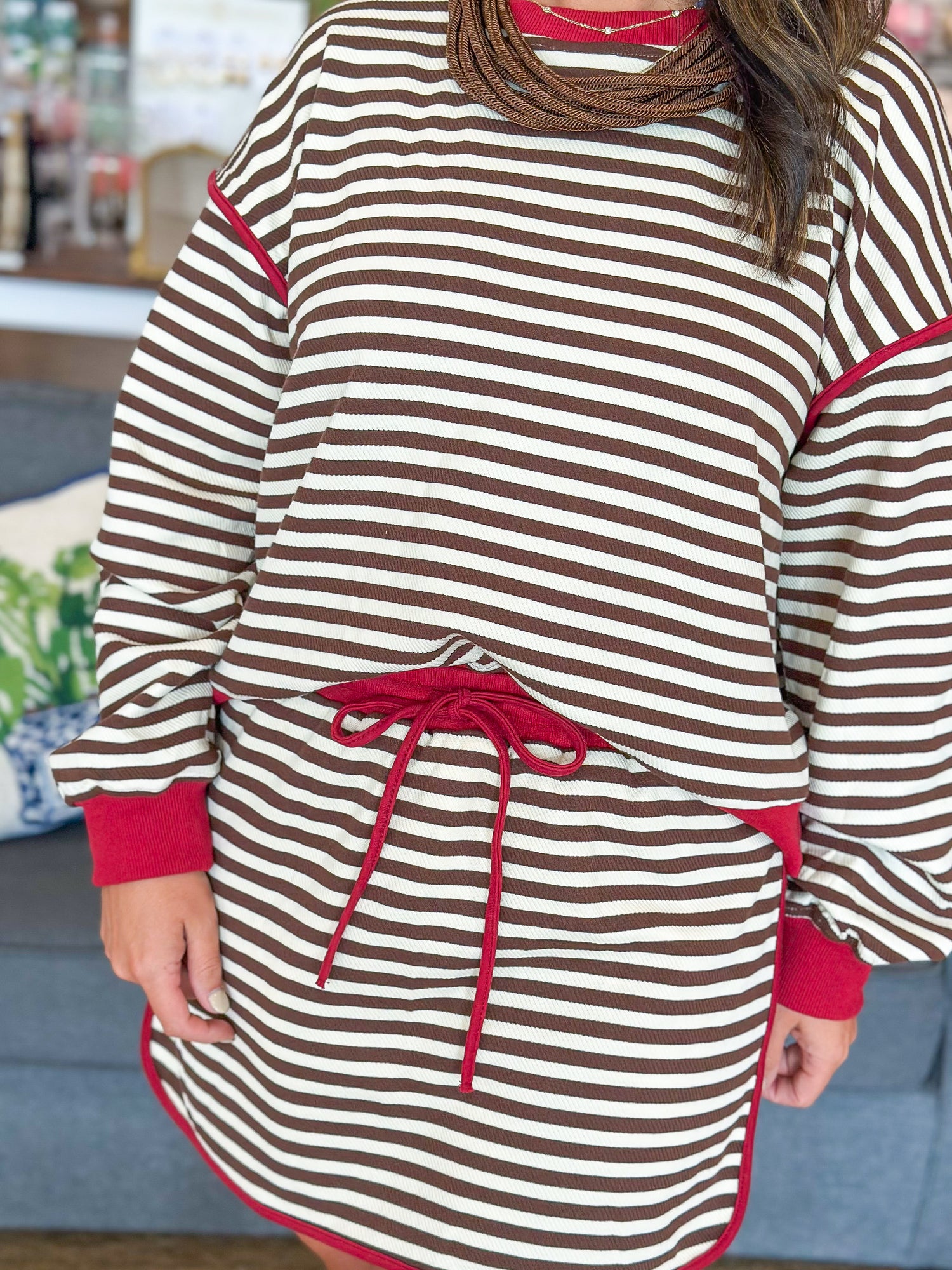 Embrace the crisp charm of autumn with the Cider Stripe Set, designed to bring warmth and subtle style to your seasonal wardrobe! Featuring cozy textures and a timeless striped pattern, this set effortlessly blends comfort with sophistication! Perfect for layering on cooler days, it captures the essence of fall with its rich tones and versatile appeal, making it an essential addition for expert dressing through the harvest season!