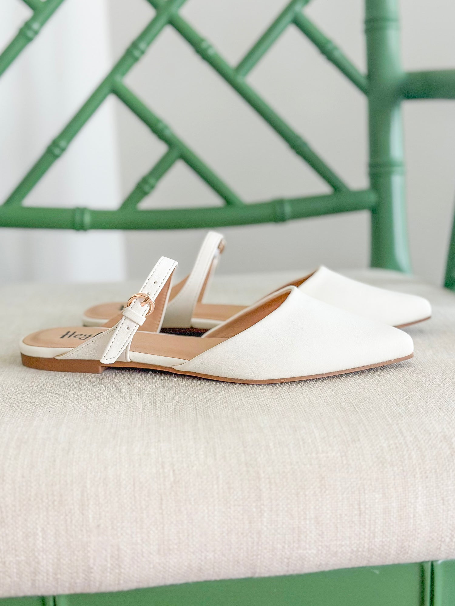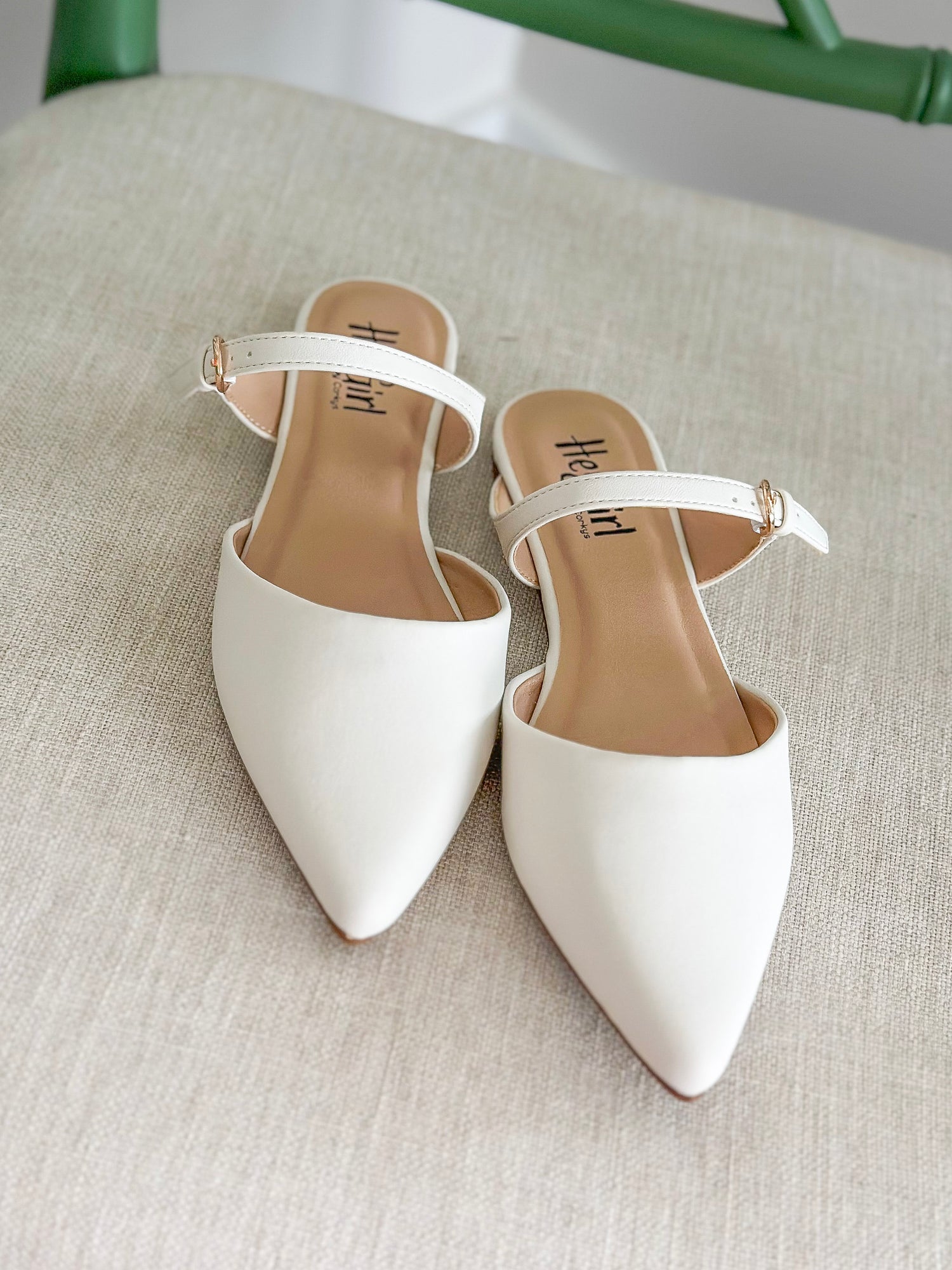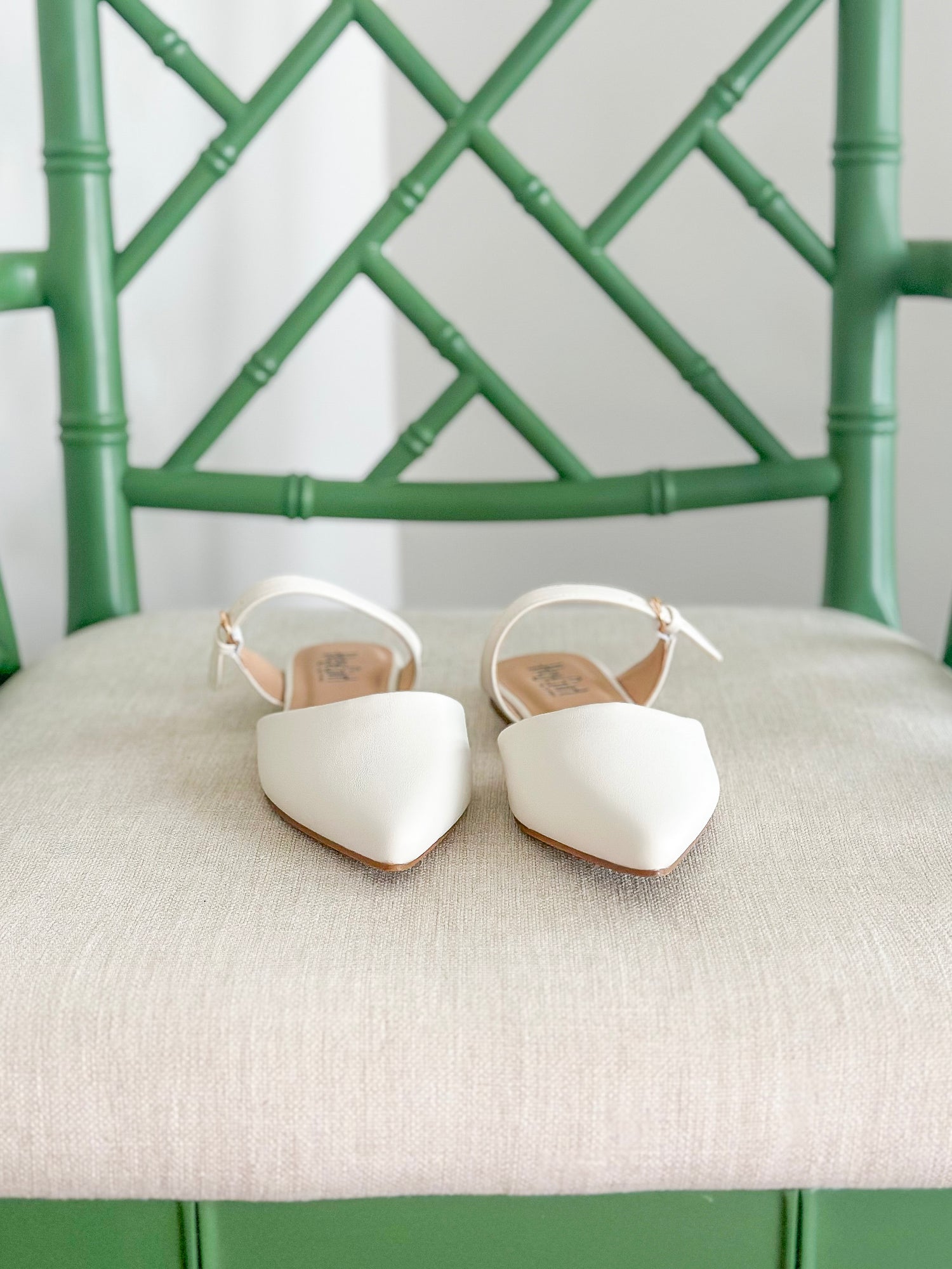 These classic slingback mules are made to stand out while staying effortlessly wearable. Featuring a sleek pointed toe, cream finish, and an adjustable slingback strap for a secure, comfortable fit, they bring just the right amount of elegance to everyday looks. Perfect for pairing with denim, dresses, or workwear, these flats add instant personality and polished style to any outfit.