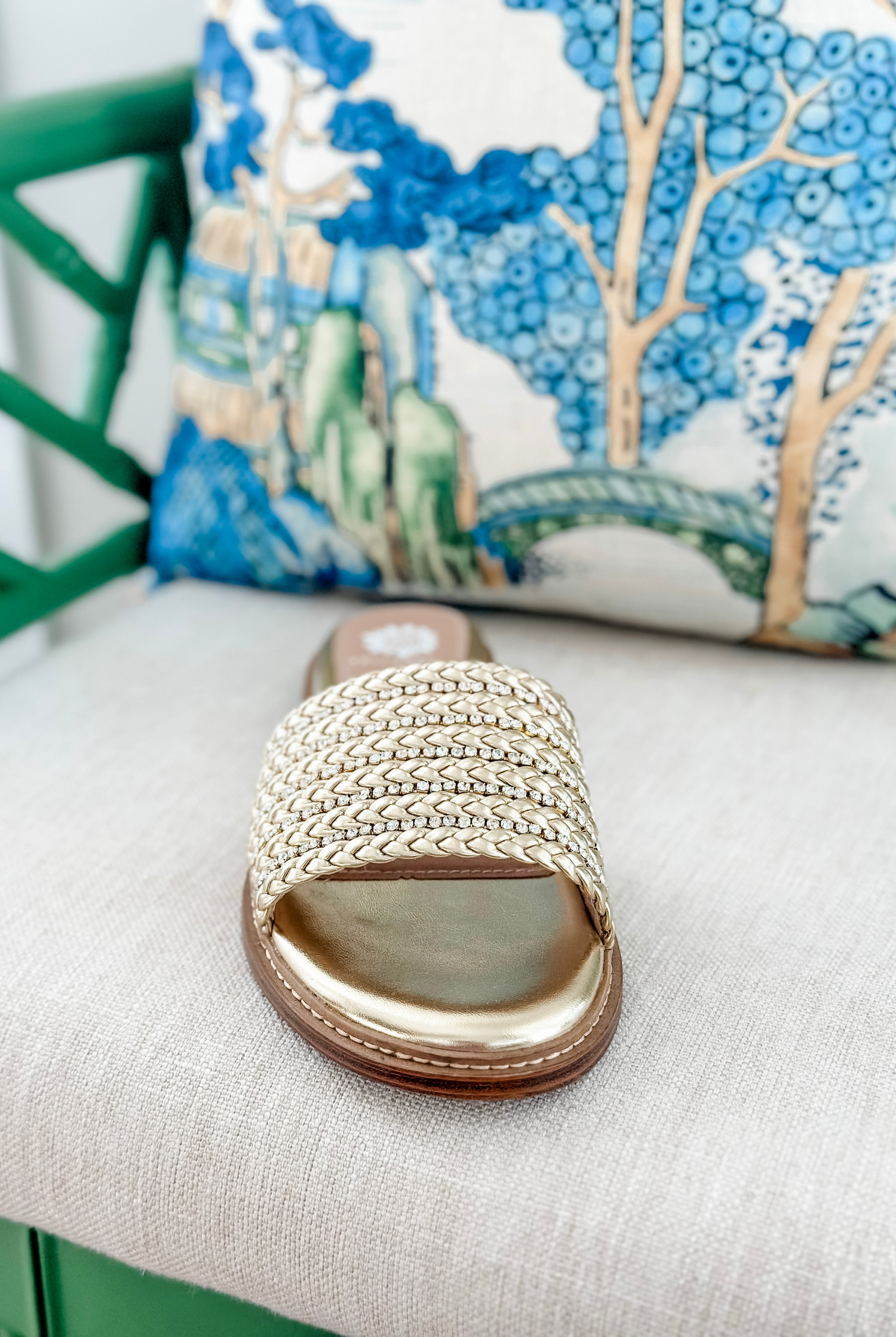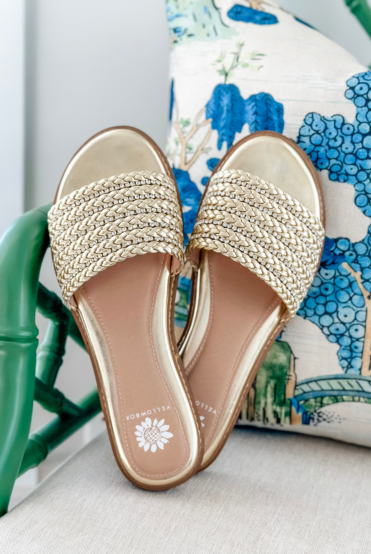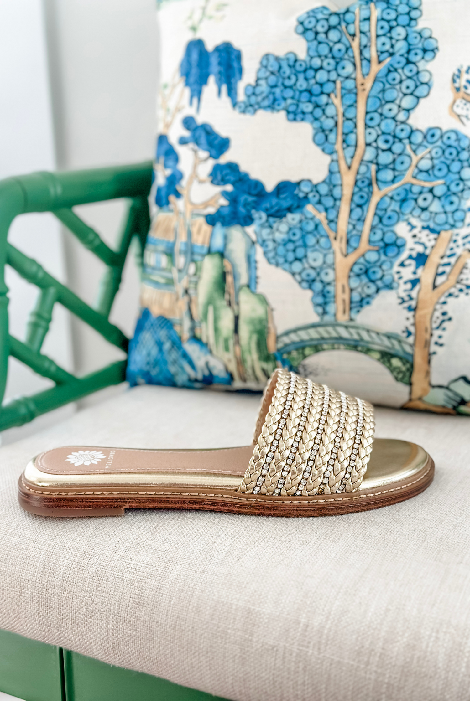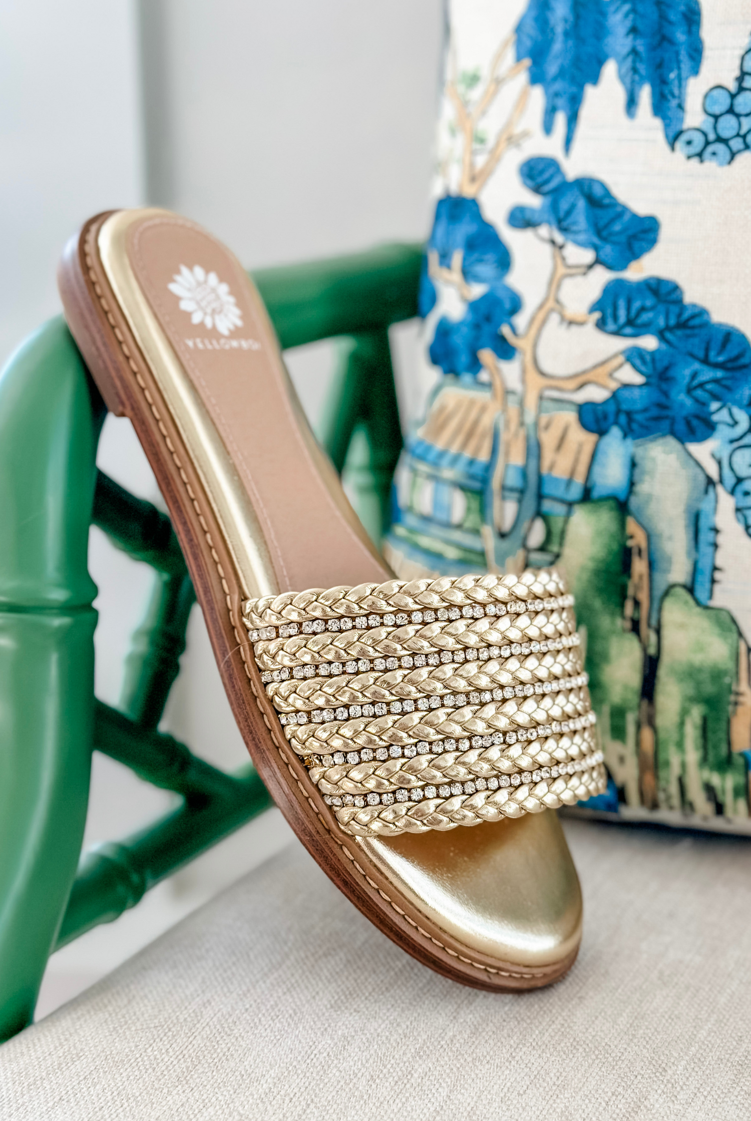 Get ready for compliments with these LASKY slide sandals! The one-band slide features supple faux leather braids with inset rhinestones for instant glam. The wrapped insole, crafted with our Signature Yellow Box High Rebound EVA, makes them perfect for all-day wear.