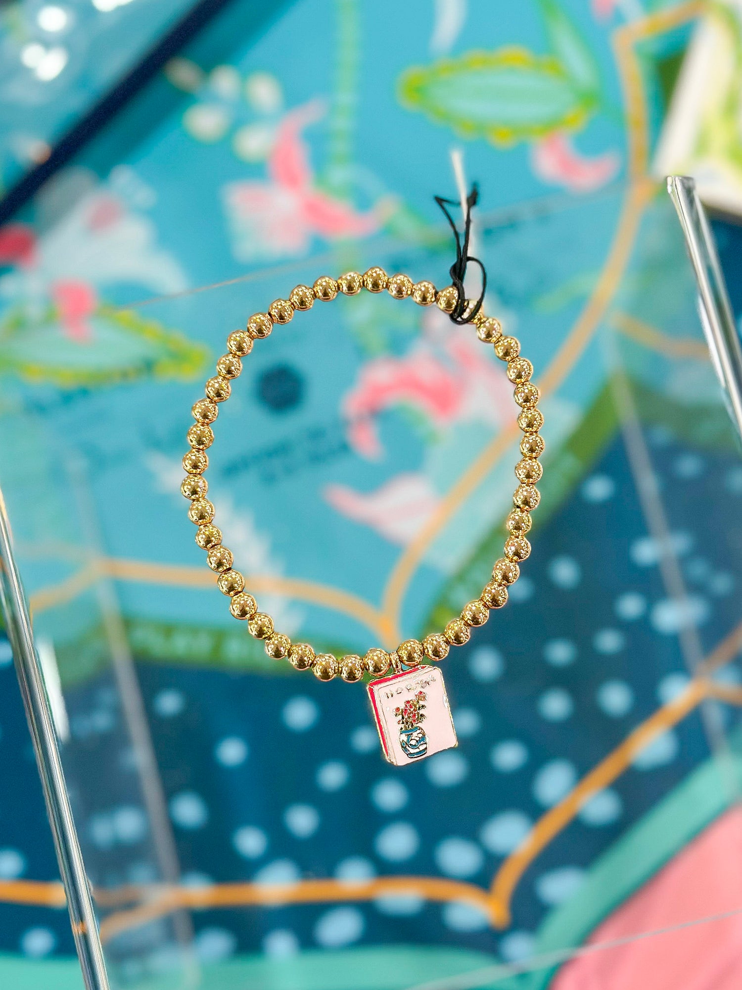 Mahjong Tile Ball Bead Stretch Bracelet in Shiny Gold