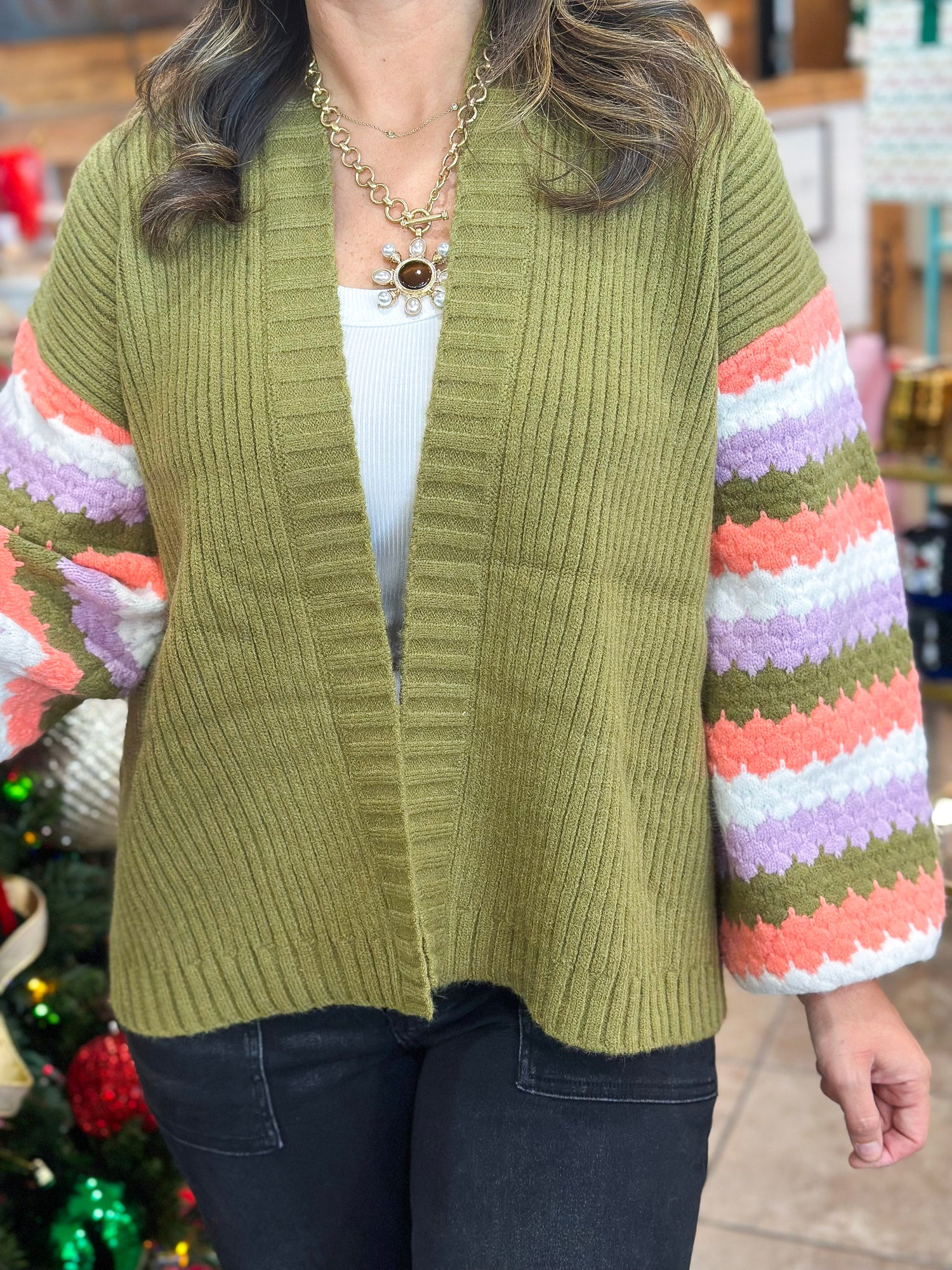 Mary Square Pippa Cardigan Sweater in Green Multi