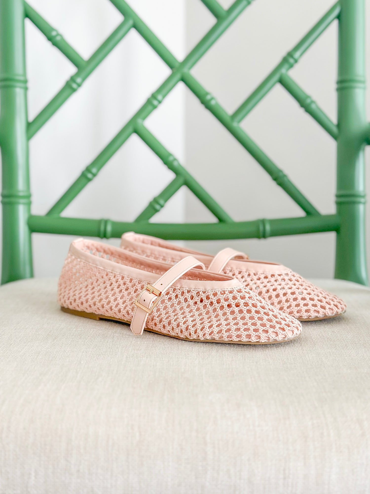The Nolita vegan flat by Coconuts by Matisse showcases a soft powder pink textile upper with an airy woven design and classic Mary Jane strap!