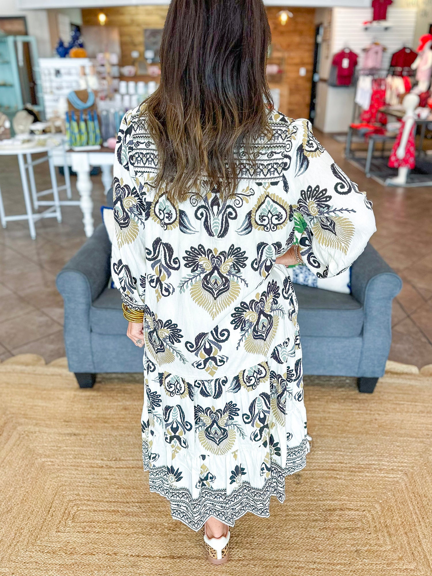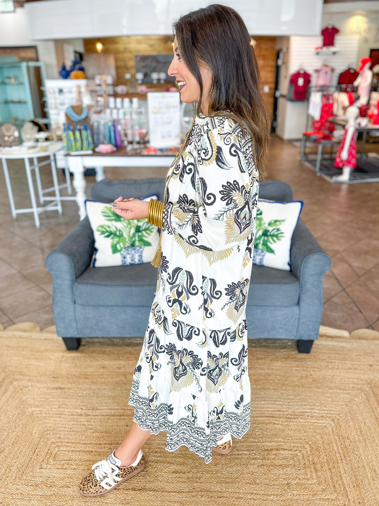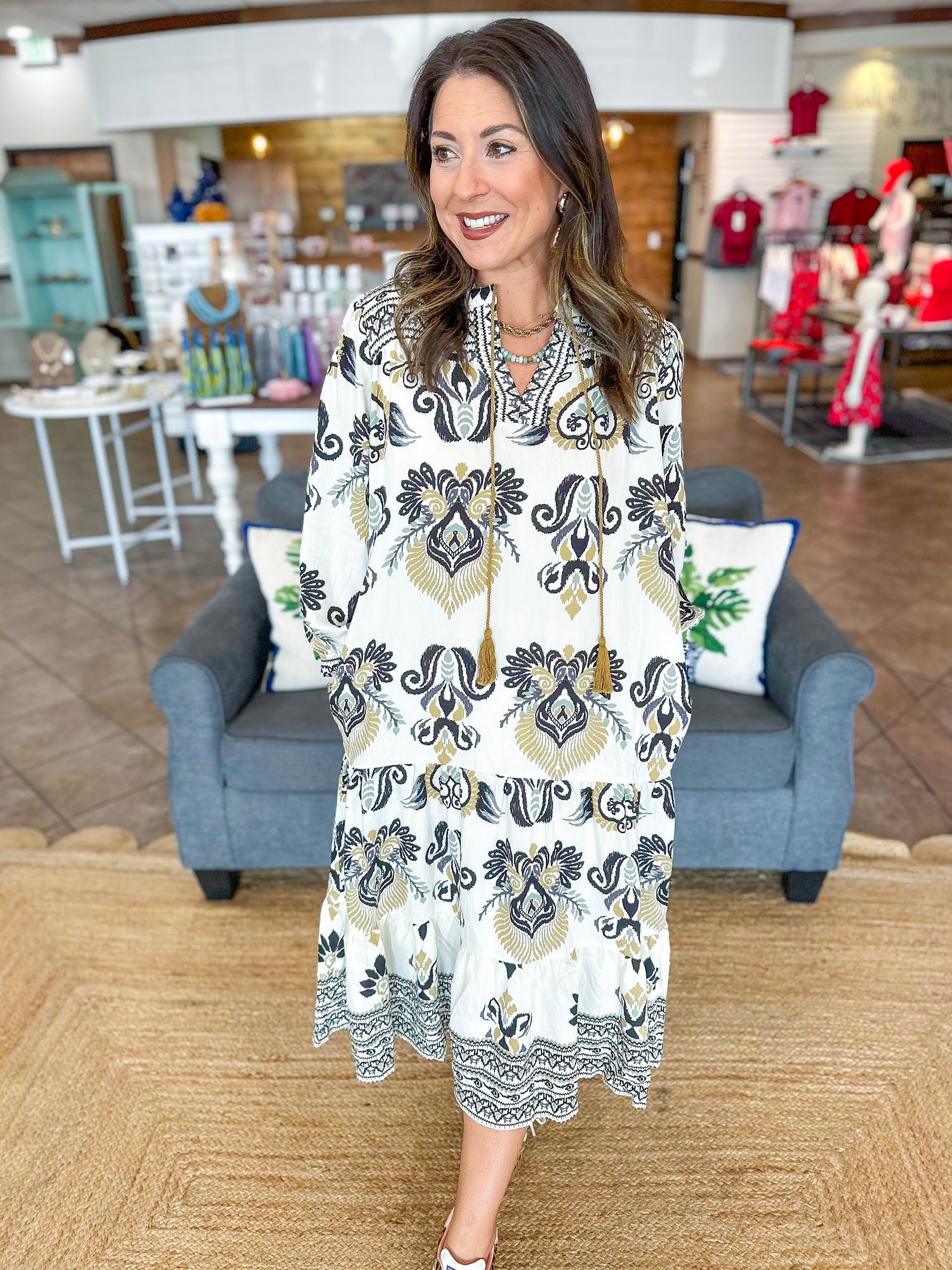 Embrace the season’s transition with the Muted Meadow Midi Dress, a refined choice for autumn’s evolving palette! Its subtle hues echo the gentle fading of summer meadows, while the midi length offers versatile elegance suited for layering! Crafted for comfort and style, this dress pairs effortlessly with boots or cozy knits, making it a sophisticated staple to carry you gracefully through crisp fall days and early evenings!