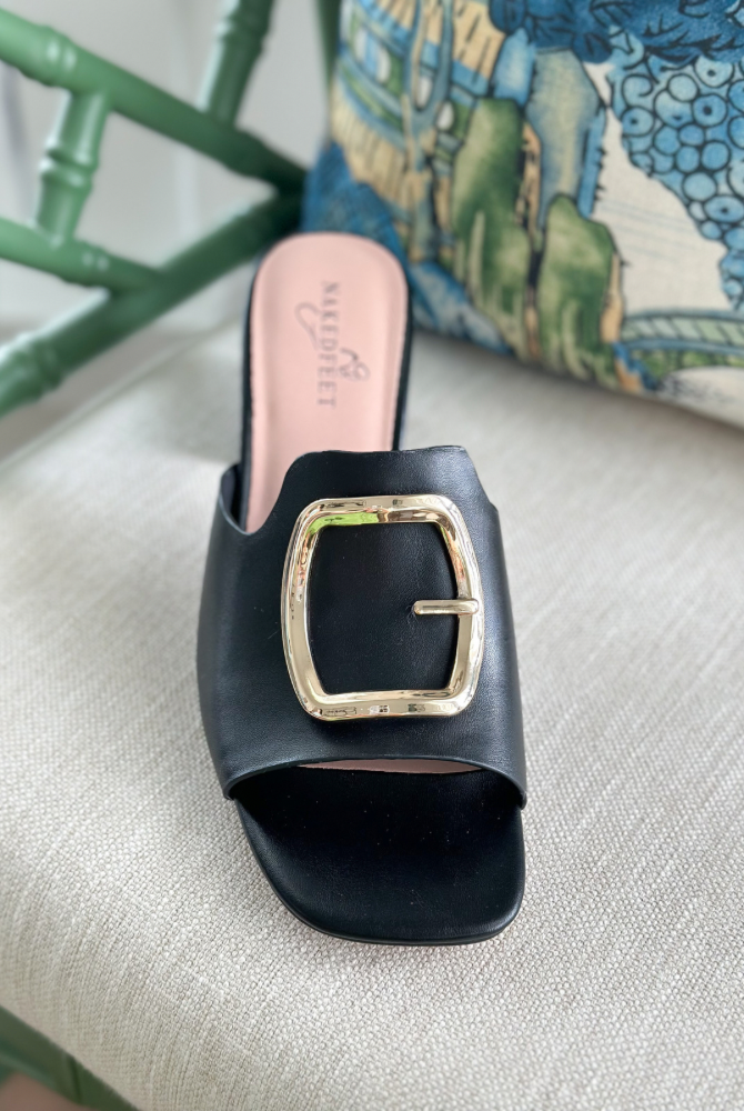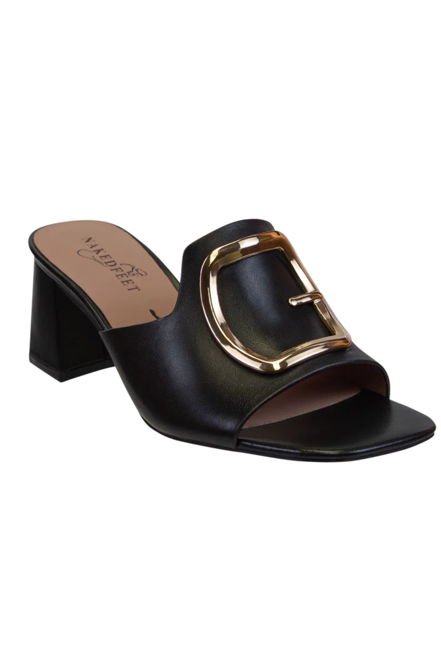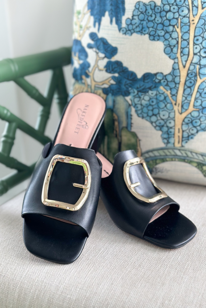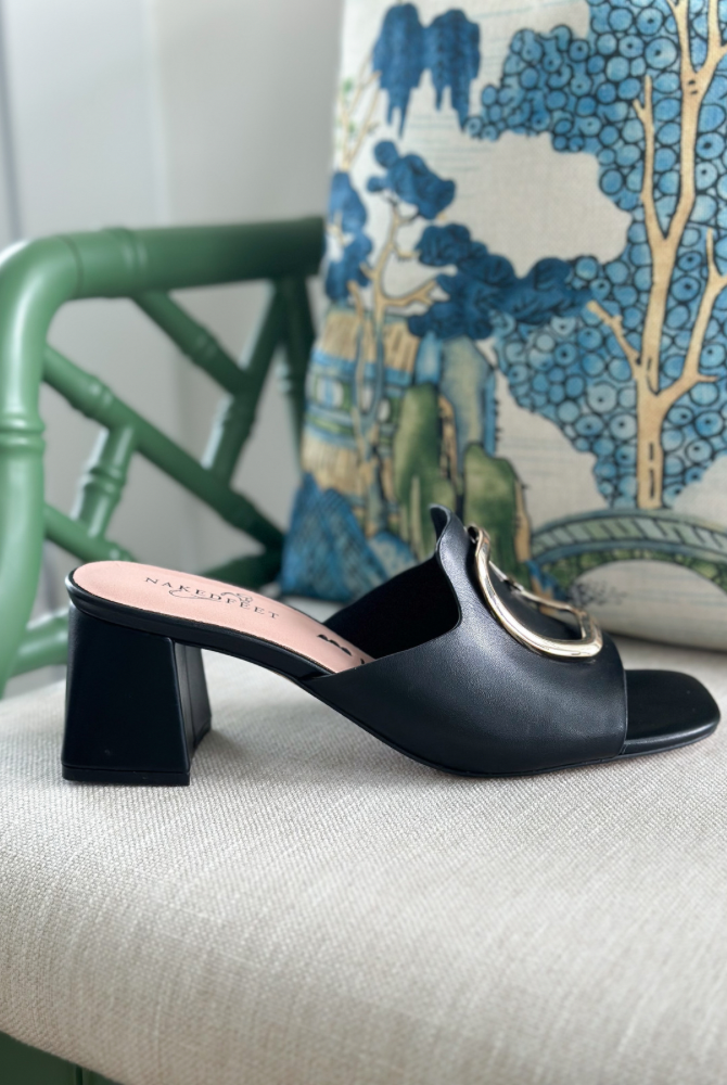 These effortless women's black heeled slides are designed to bring elegance to all of life's occasions. Featuring a statement buckle and simple block heel, the look can easily transition from office to evening attire, and everywhere in between. Pair with your favorite denim for a casual look, or with dresses and suiting for special occasions. Looking for wardrobe staples? Cupel in black is your new go-to grab you can wear for years to come.
