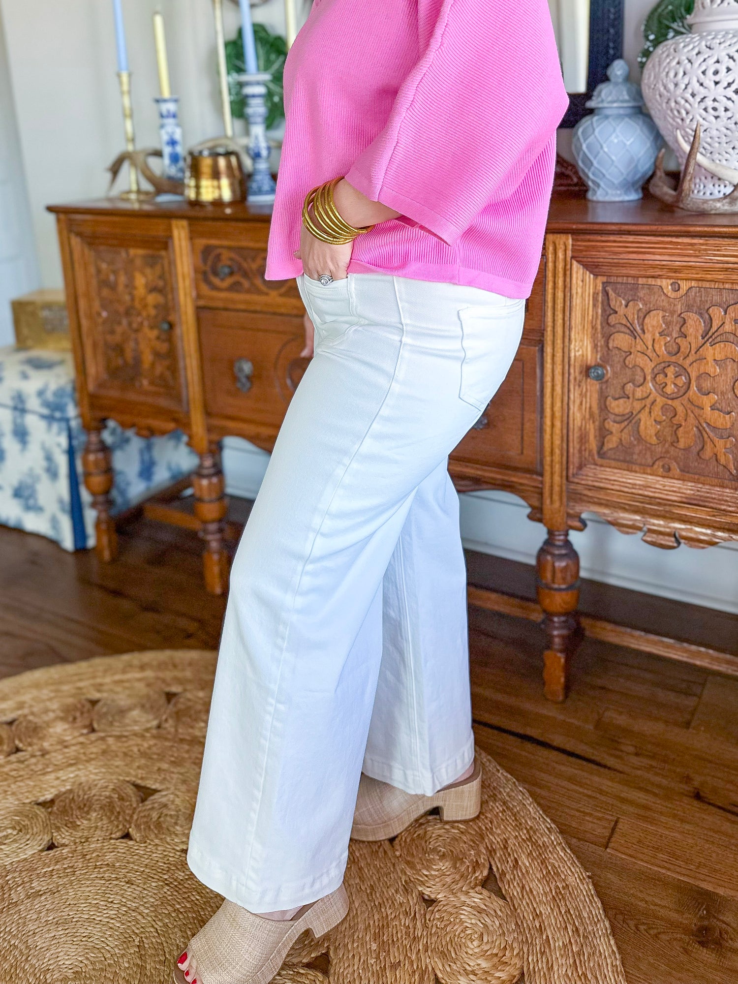 Crisp, clean, and effortlessly chic, the Polly High-Rise Wide Leg Jeans are a spring-and-summer staple you’ll reach for again and again. Designed with a flattering high-rise waist and an easy wide leg silhouette, Polly offers a polished look with all-day comfort.