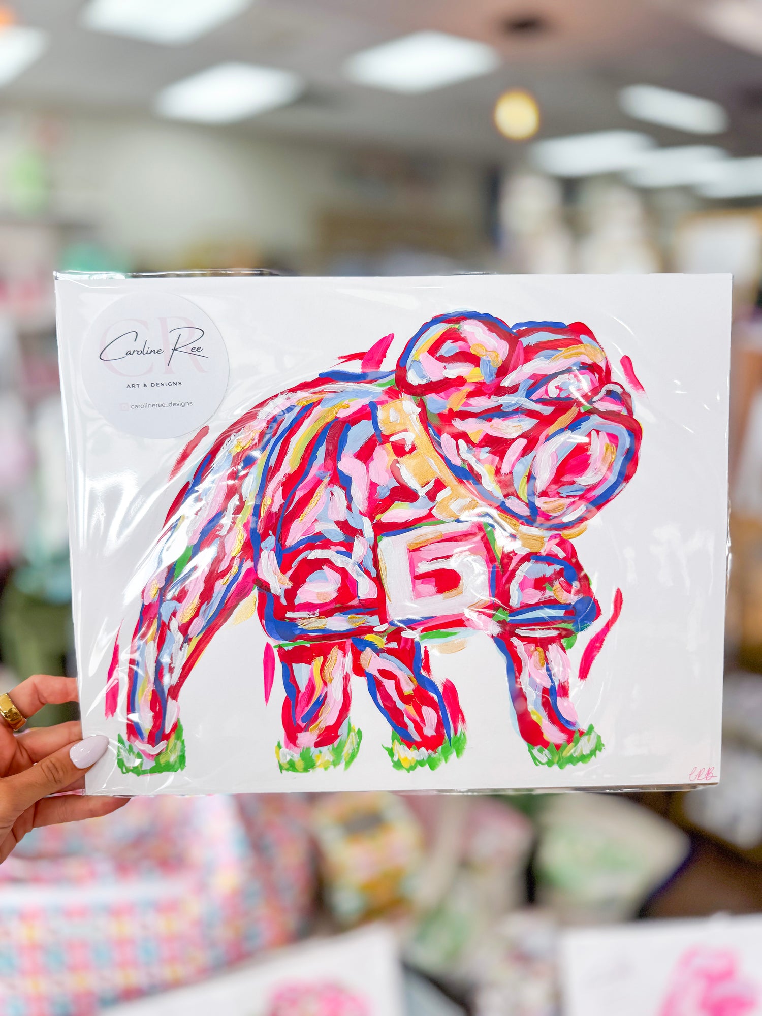 Caroline Barksdale Original Painting - Red Multi Standing Bulldog
