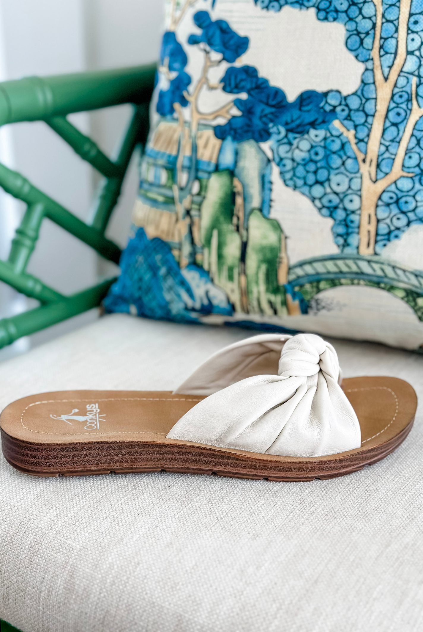 These neutral Corkys sandals are the perfect Spring and Summer shoe! With its soft strap material, you are sure to be comfy in these Ivory sandals! The knot detail is such a sweet and simple design that will elevate your outfit! This comfortable style will pair perfectly with any fit, just slip them on and head out the door!