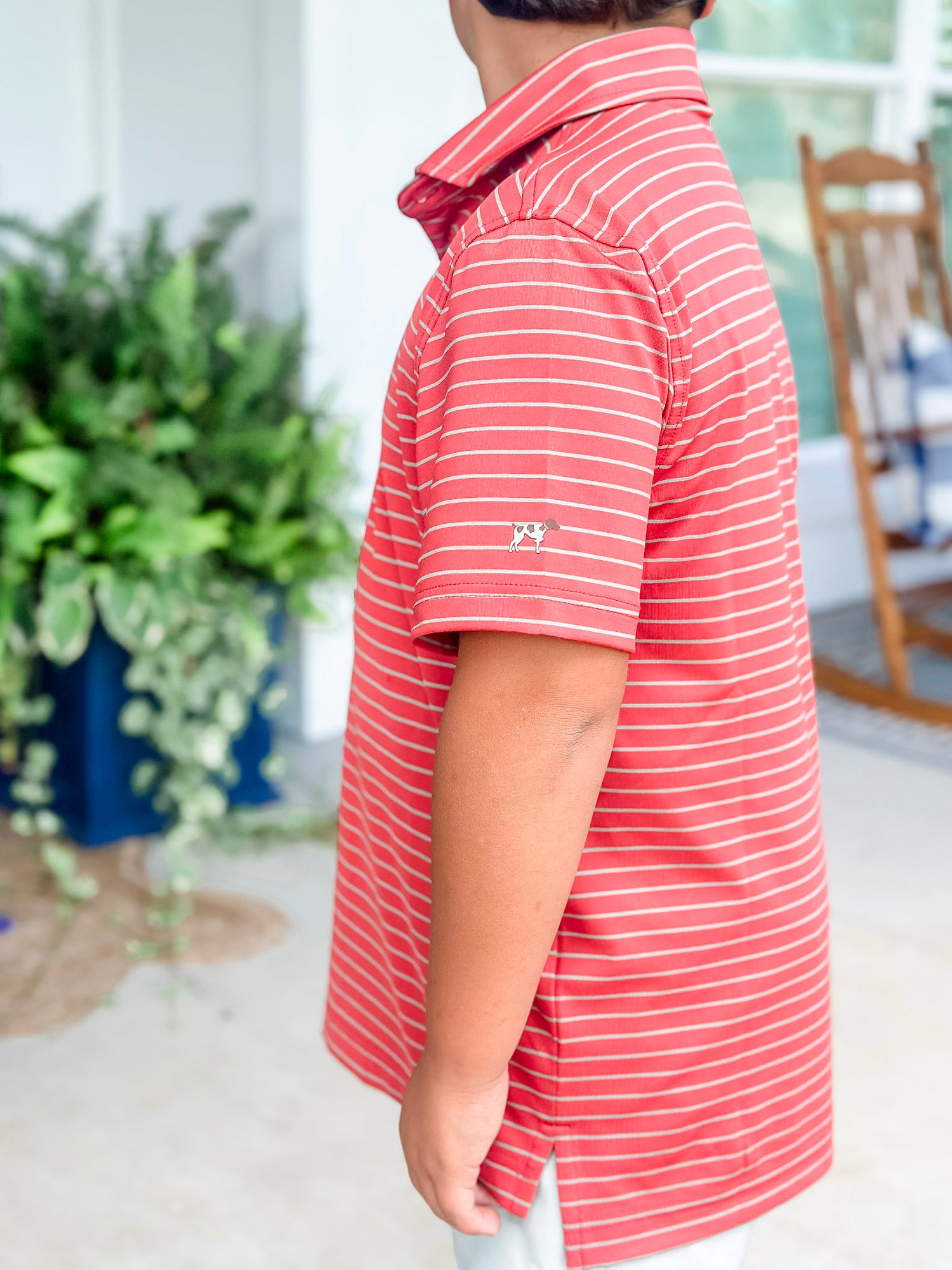 Southern Point Youth Hinton Stripe Performance Polo in Chili Oil/Laurel Oak