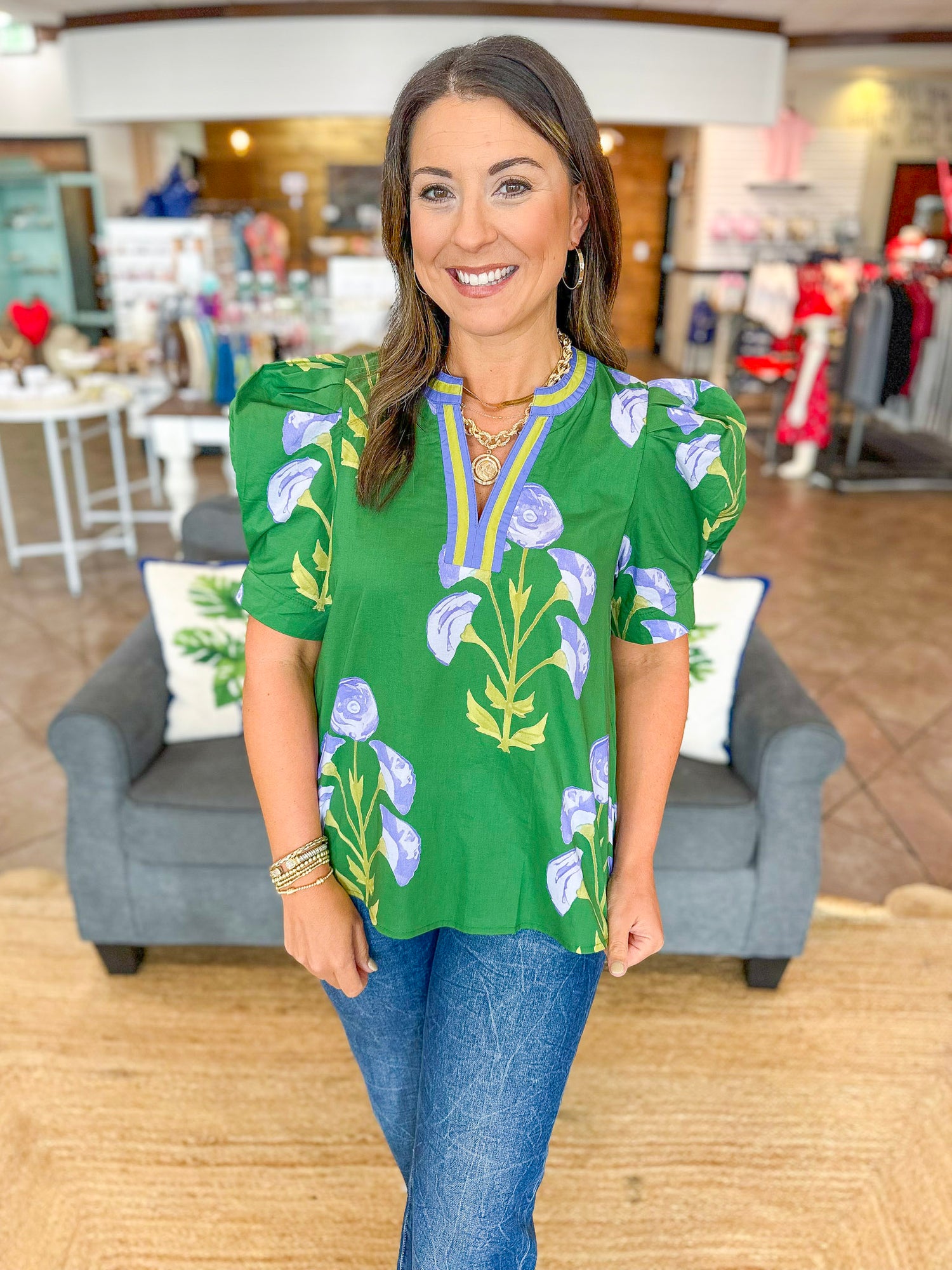 Embrace autumn’s charm in the Rustic Blooms Top in Green, where cozy meets playful! This floral print captures fall’s spirit with a fresh green palette, perfect for layering under your favorite jacket or wearing solo on crisp days! Lightweight yet flattering, it brings a touch of nature’s whimsy right into your wardrobe—ideal for pumpkin patches, coffee runs, or simply turning heads with seasonal style!