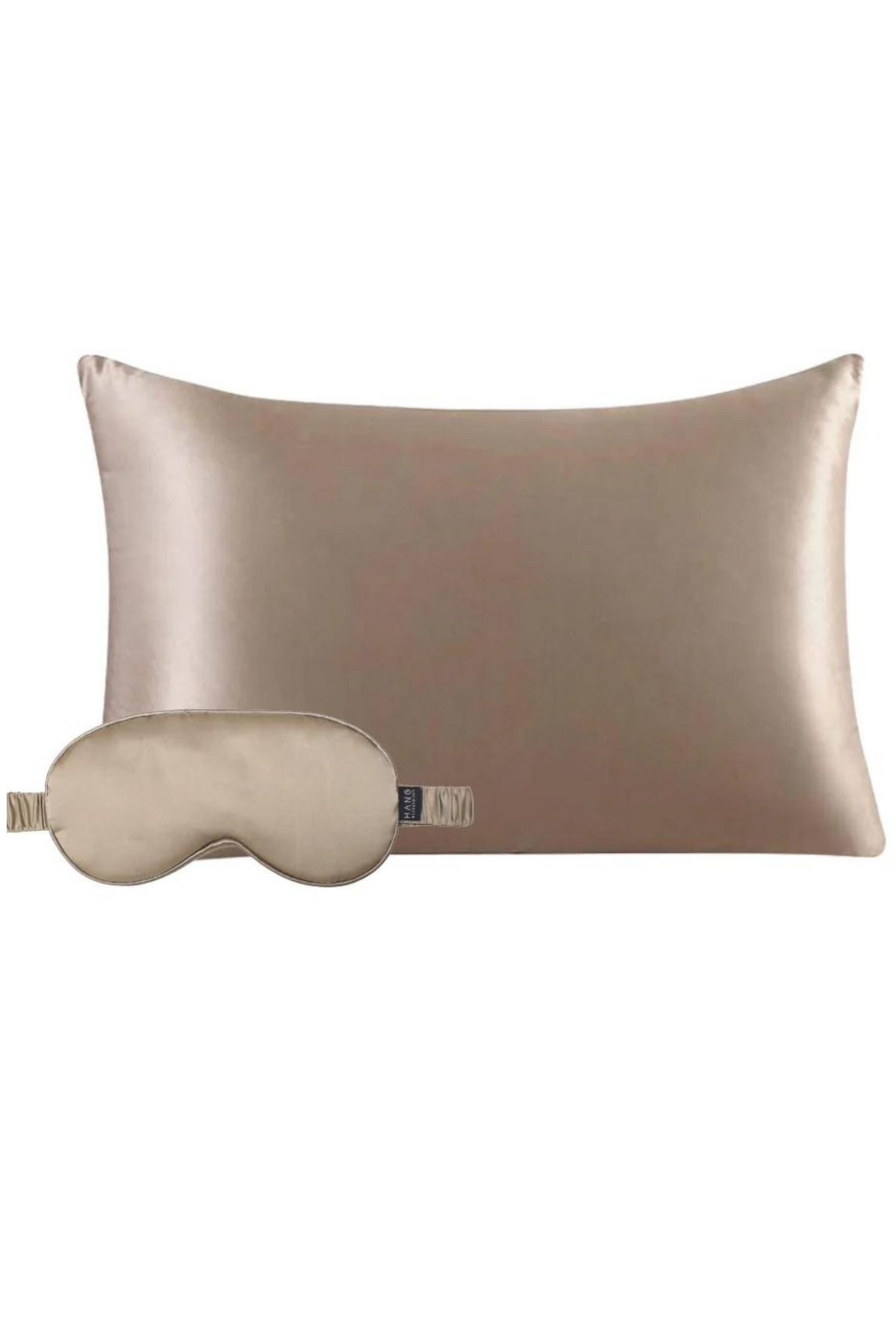 Taupe Satin Pillowcase & Taupe Satin Eye Mask Set