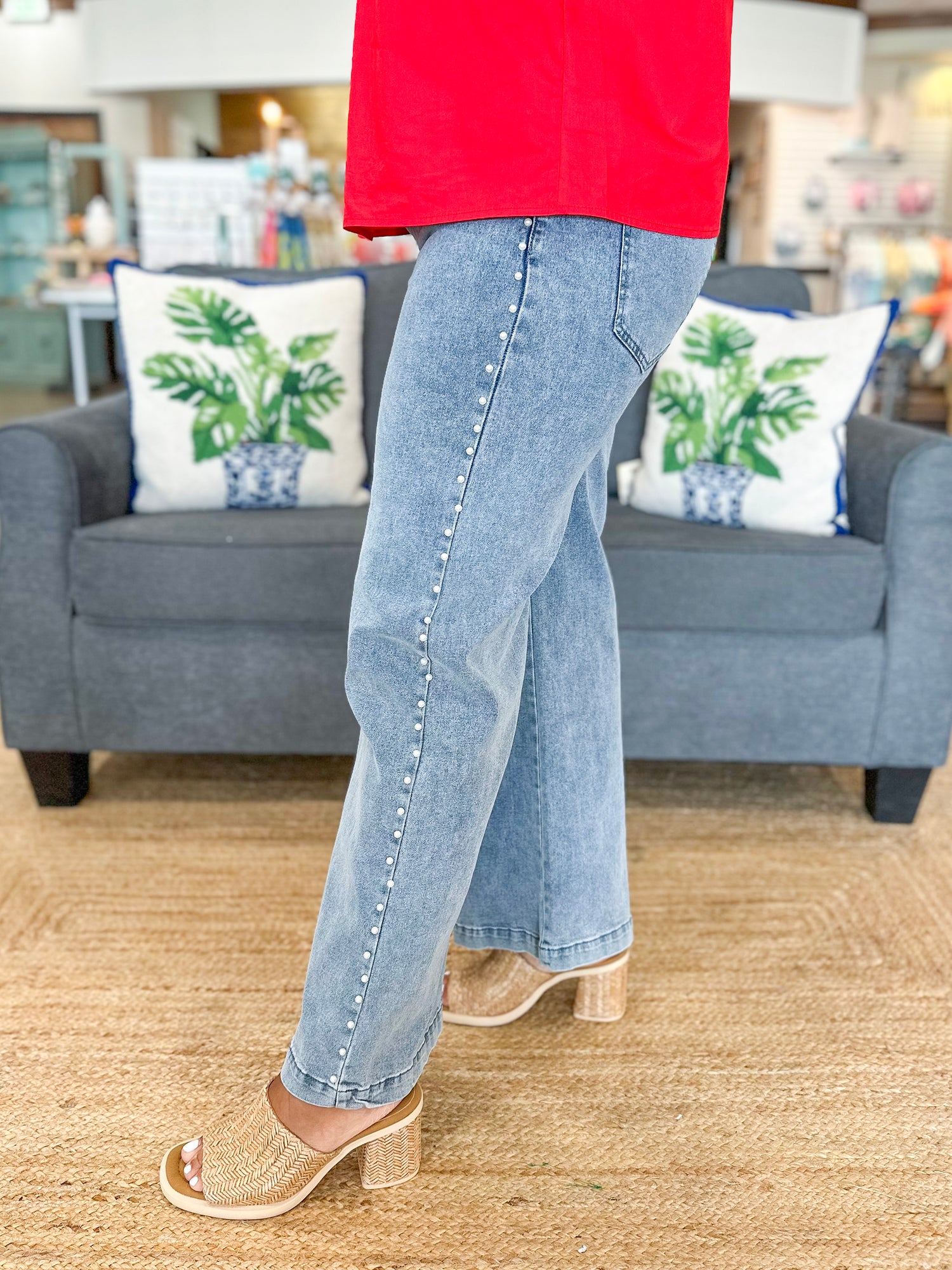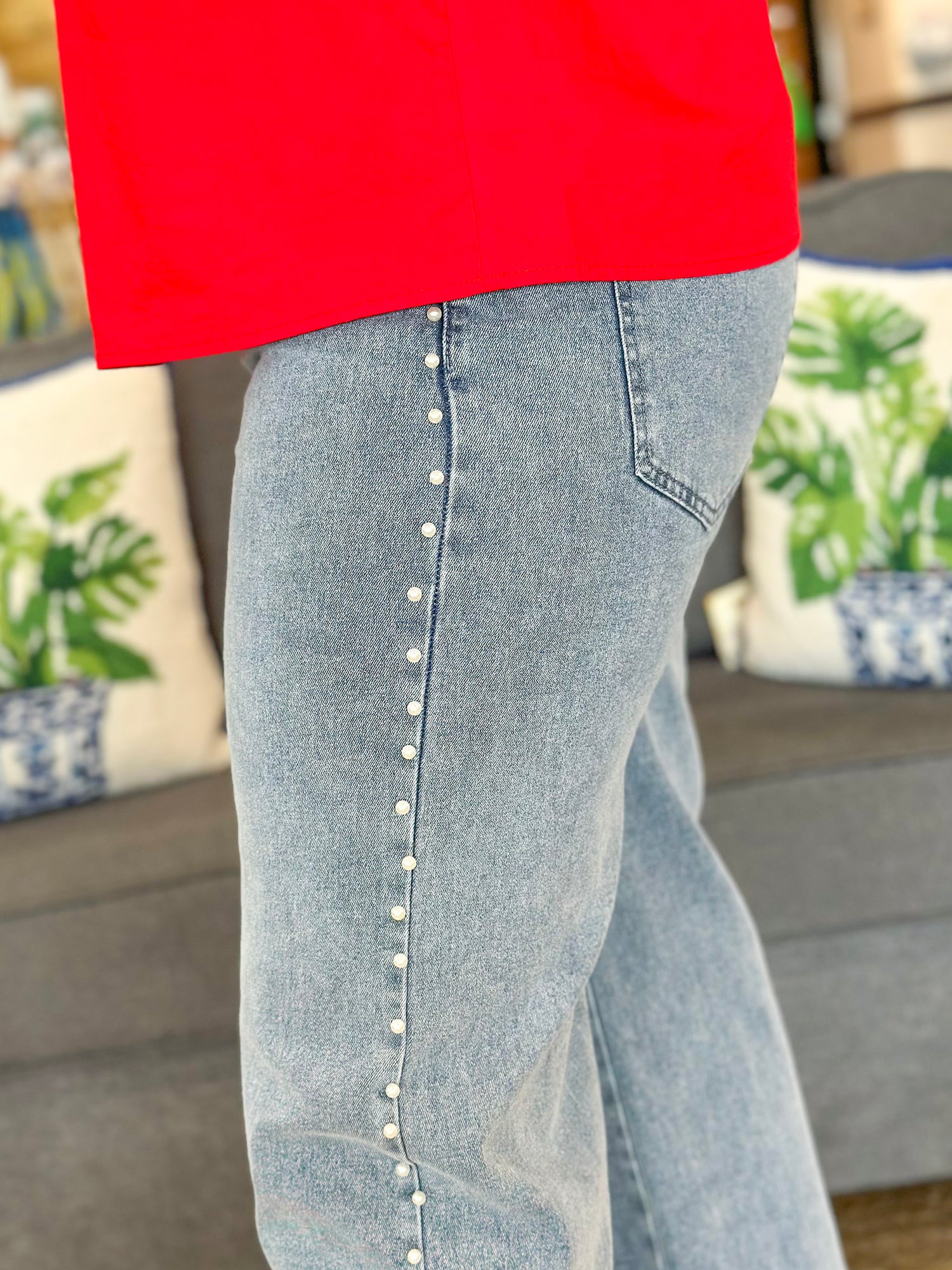 Slip into The Caroline Pearl Jeans and let your style sparkle with every step! These pearl jeans blend classic comfort with a hint of playful charm, perfect for turning heads without trying too hard! Crafted to hug your curves just right, they offer a flattering fit that moves with you, whether you're dancing through the day or kicking back in style! Elevate your denim game with a touch of effortless elegance that’s as fun as it is fabulous!
