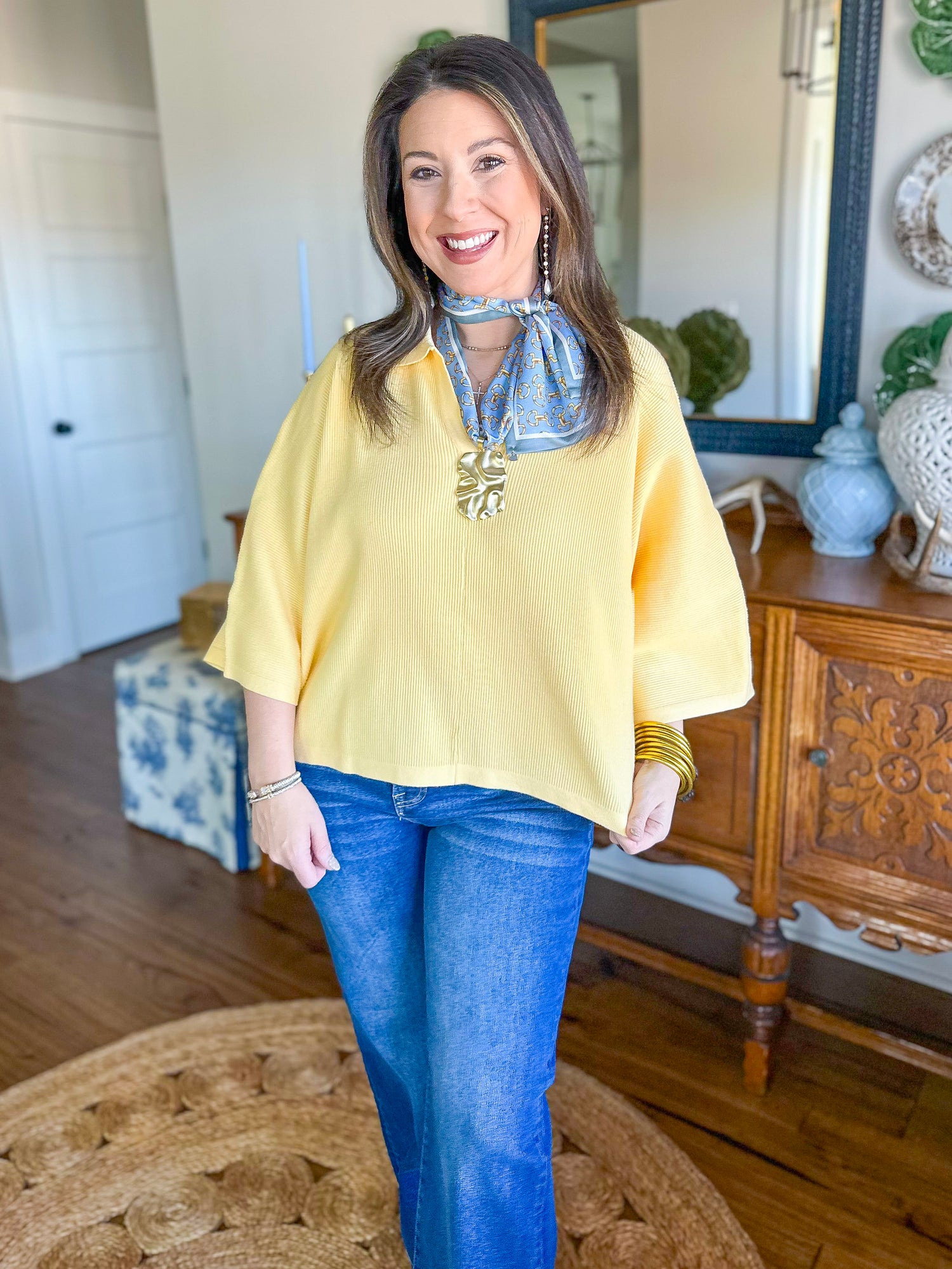 The lightweight ribbed texture makes it perfect for warmer days, while the elbow-length sleeves add just the right amount of coverage. Whether styled with printed pants, denim, or a feminine skirt, this sweater transitions seamlessly from casual to refined with a simple change of accessories.