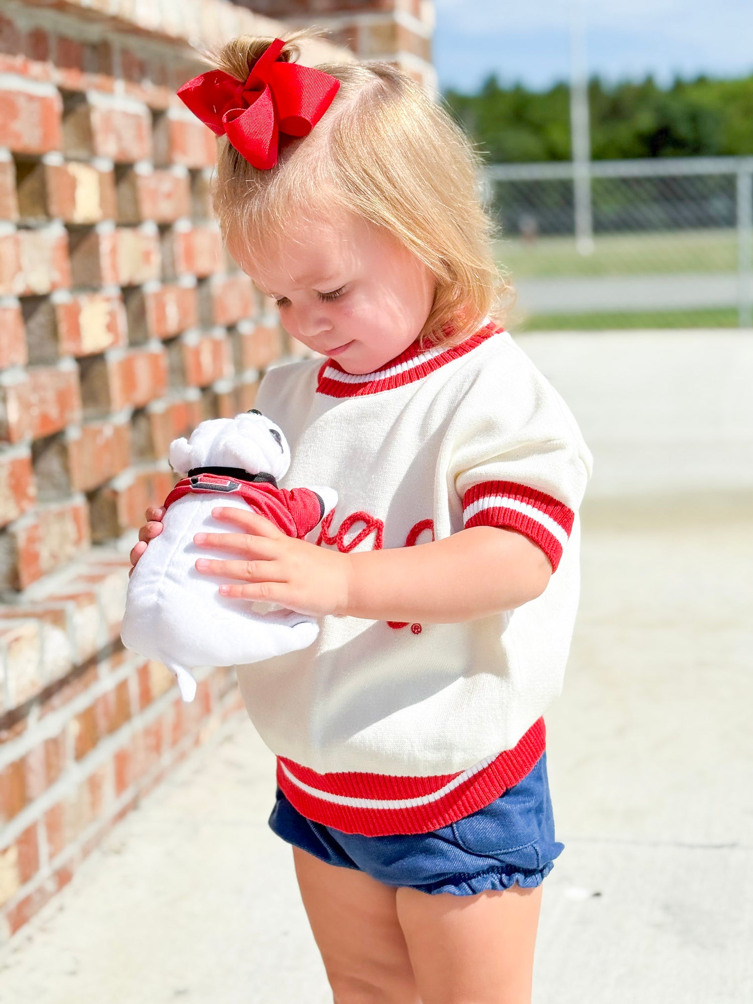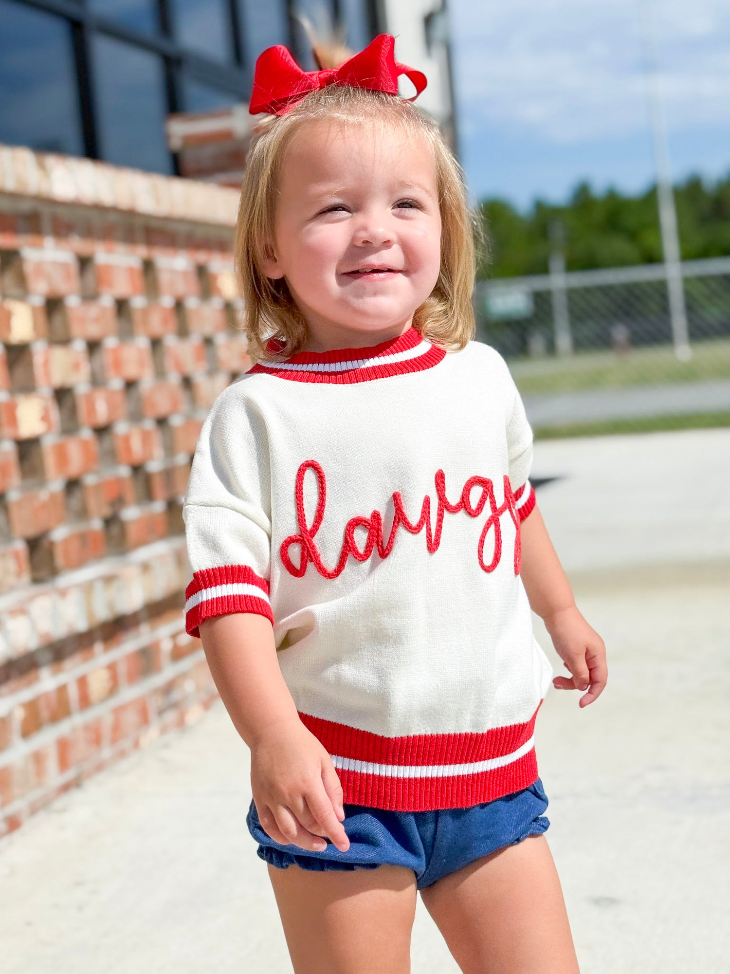Get ready for cozy adventures with the Girls Georgia Embroidered Varsity Sweater! This charming toddler shirt blends sporty style with soft comfort, featuring playful embroidery that adds a touch of fun to every outfit! Perfect for little ones who love to move and explore, it keeps them snug while showing off a cool, varsity vibe! Easy to wear and easy to love, this sweater is a winning pick for everyday playdates and family outings alike!