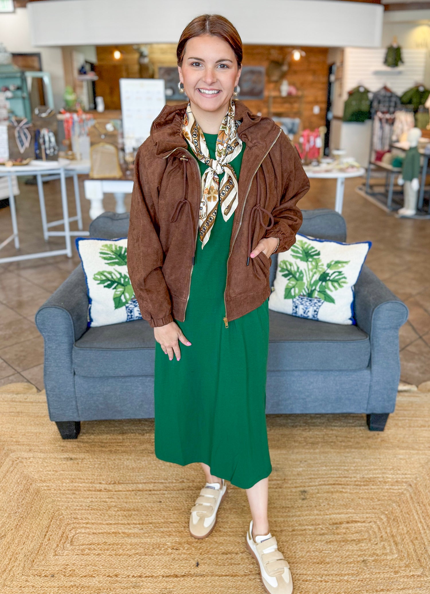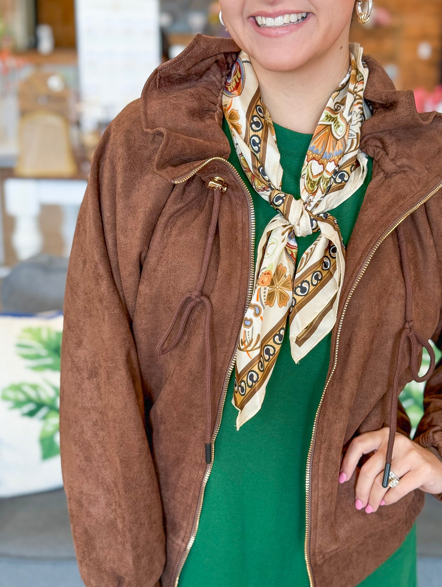 The Westwood Suede Zip Jacket brings effortless sophistication to every outfit! Available in rich merlot and classic chocolate, this faux suede jacket features gold hardware, front pockets, and a feminine ruffled collar for that perfect blend of polish and edge.