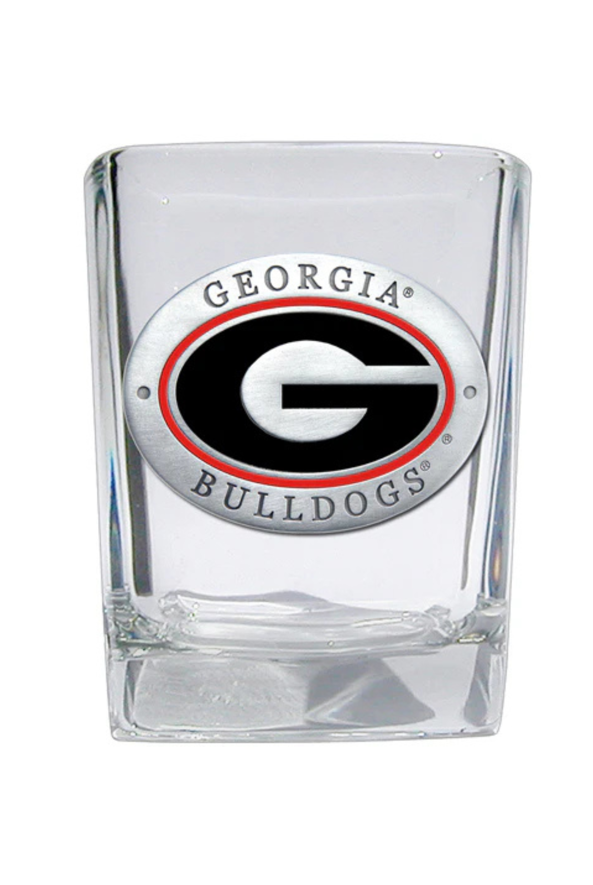 This 1.5 ounce square shot glass is highlighted with a fine pewter casting. Made in USA.