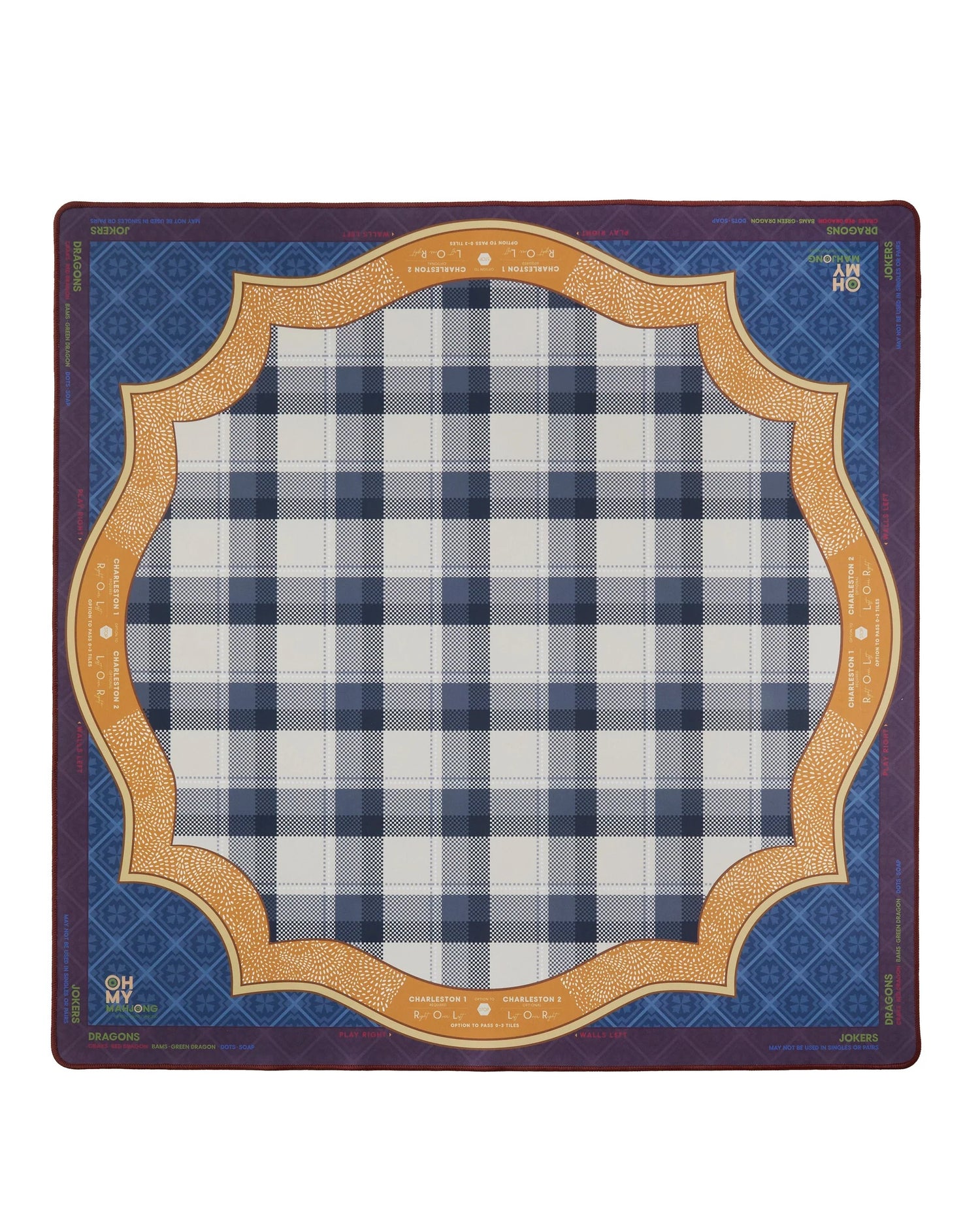 Introducing the Vanderbilt Mat — a distinguished and richly layered addition to your Mahjong setup, crafted for those who appreciate understated luxury and classic sophistication. Featuring a masculine-inspired plaid in deep blues, maroons, greys, and gold accents, this mat brings a warm, polished, and collegiate feel to your game night atmosphere.