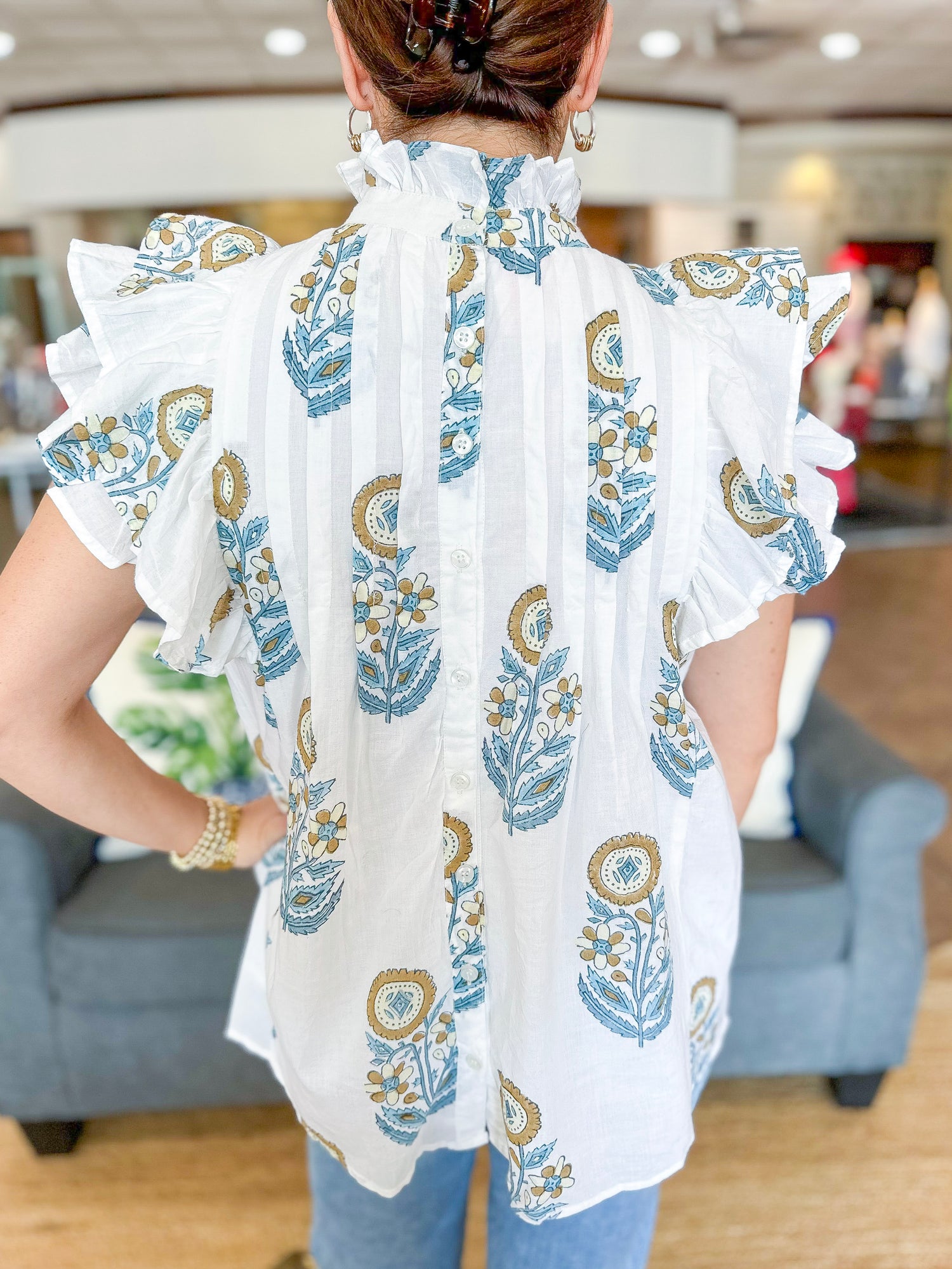 A romantic take on effortless femininity, the Jasmine Blouse was designed to be your go-to ruffle top. Featuring a delicately gathered high neckline, flutter sleeves, and a button-back closure, it pairs timeless charm with modern ease. Style it with the matching Addison Skirt for a seamlessly coordinated look, or dress it down with denim for everyday elegance.