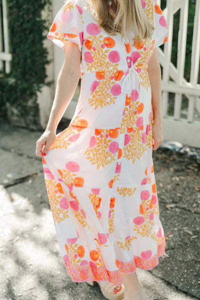 Victoria Dunn Magnolia Flutter Dress in Tangerine