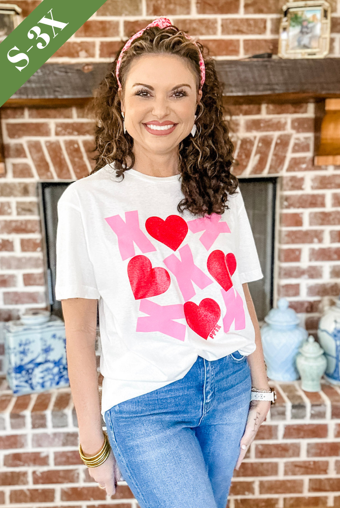 Express your love with our Valentine’s Day Tee featuring XO XO adorned with sparkling red glitter hearts. Crafted for comfort and style, this shirt is the perfect way to share your affection in a fashionable way.