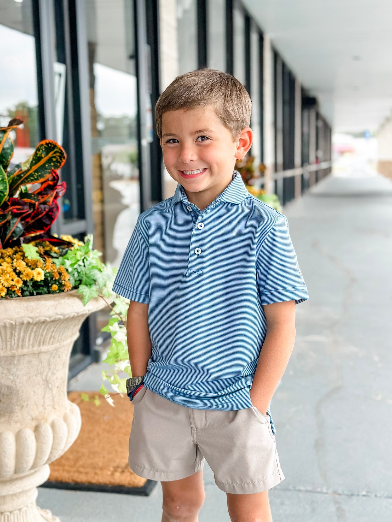 Southern Point Youth Hinton Stripe Performance Polo in Mallard Blue/Mountain Spring