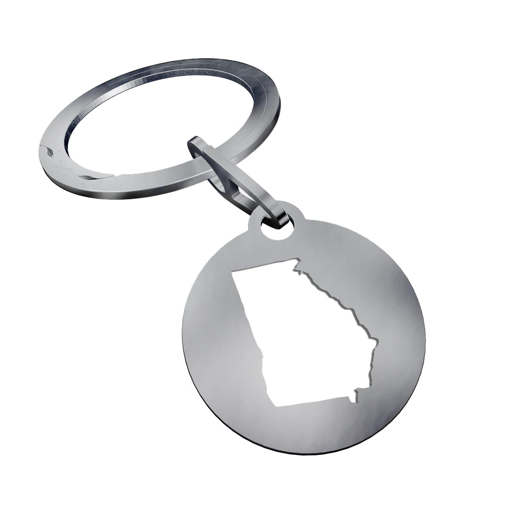 Zootility's fingernail-friendly Keyround adorned with a laser-cut State Tag. The ends are designed only to open in one plane, and interlock to avoid being pulled apart. Our Keyrounds are individually laser cut from Stainless Steel and stone washed for a quality finish.